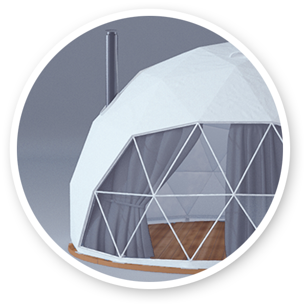 Самый оптимальный купол, идеально подходящий для романтического отдыха на двоих. Отличное решение для туризма! Позволяет за несколько дней создать гостичный номерной фонд на любых землях (на берегу озера, реки, в горах, в лесу).